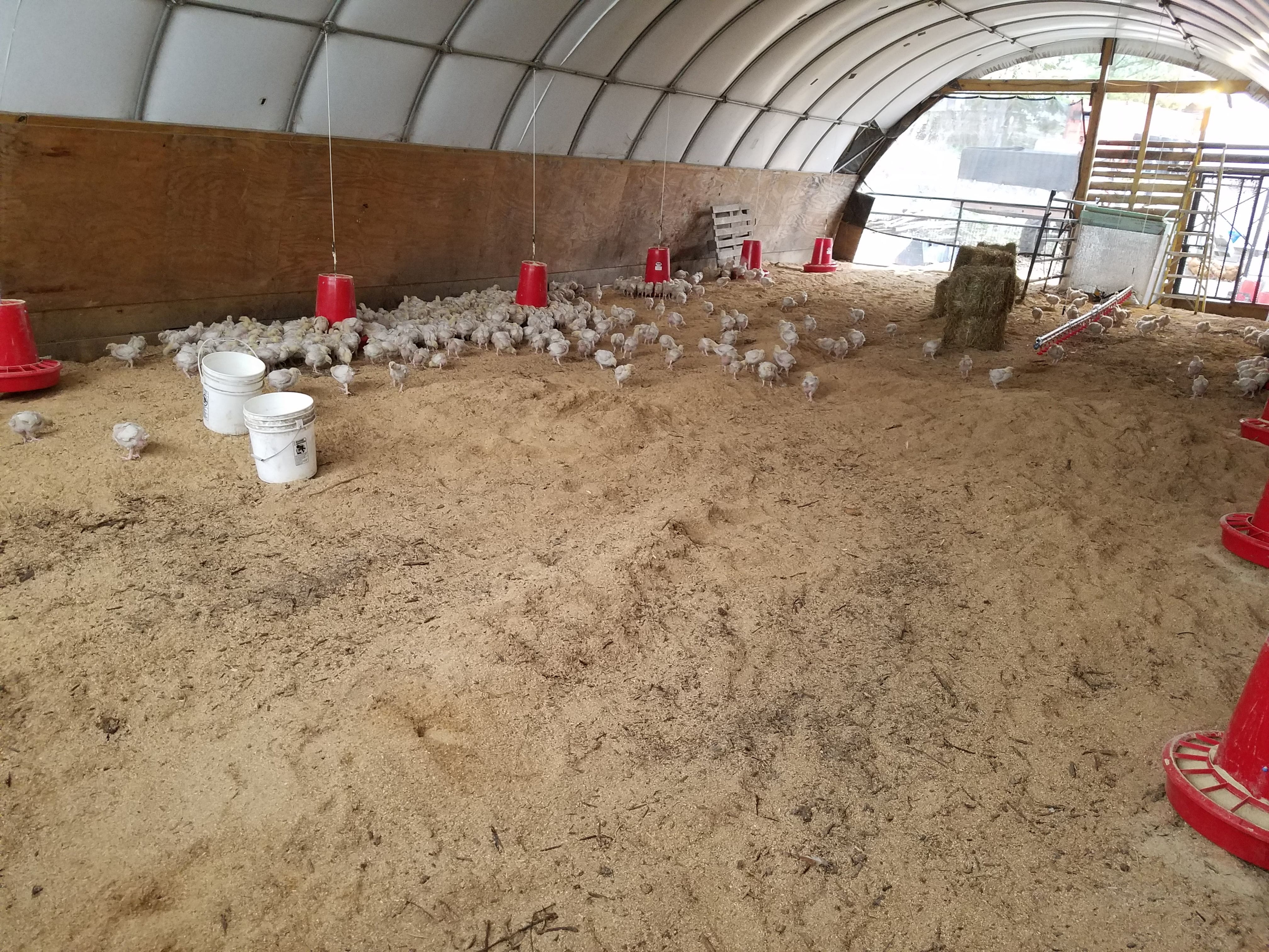 The number of chickens on the farm continues to increase. We have three batches of chickens at various stages of development, from one week old to five weeks old, all in all about two thousand chickens. Every year for the past seven years we’ve doubled the number of chickens we raise. Talk about the effects of exponential growth… We’re getting better at it, but the work and the expenses sure pile up with alarming rapidity.