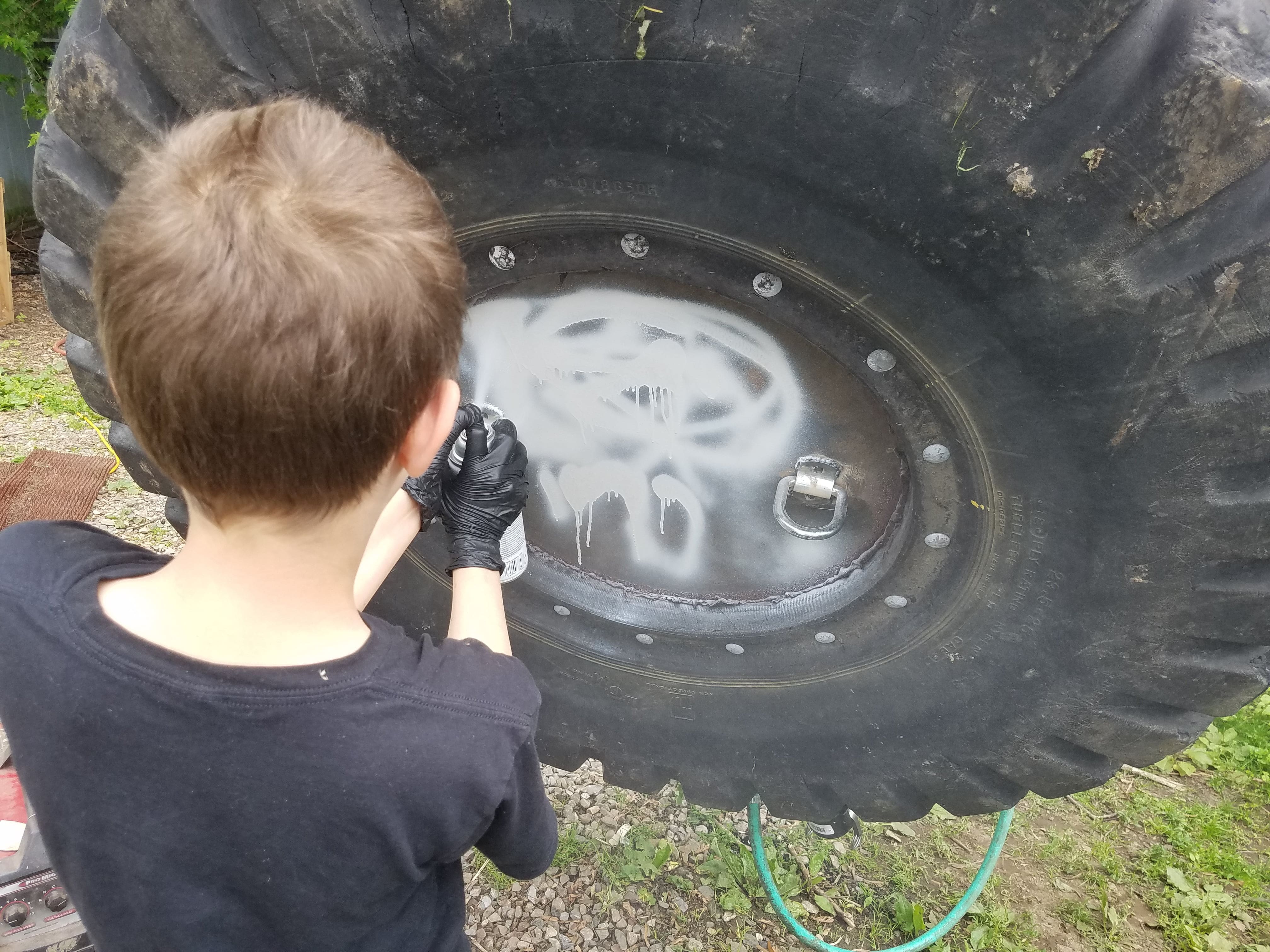 Harry volunteered to spray paint the underside with some mismatched cans of spray paint. I think he built it up from layers of graffiti messages, but eventually the whole thing was covered, so we both were happy.
