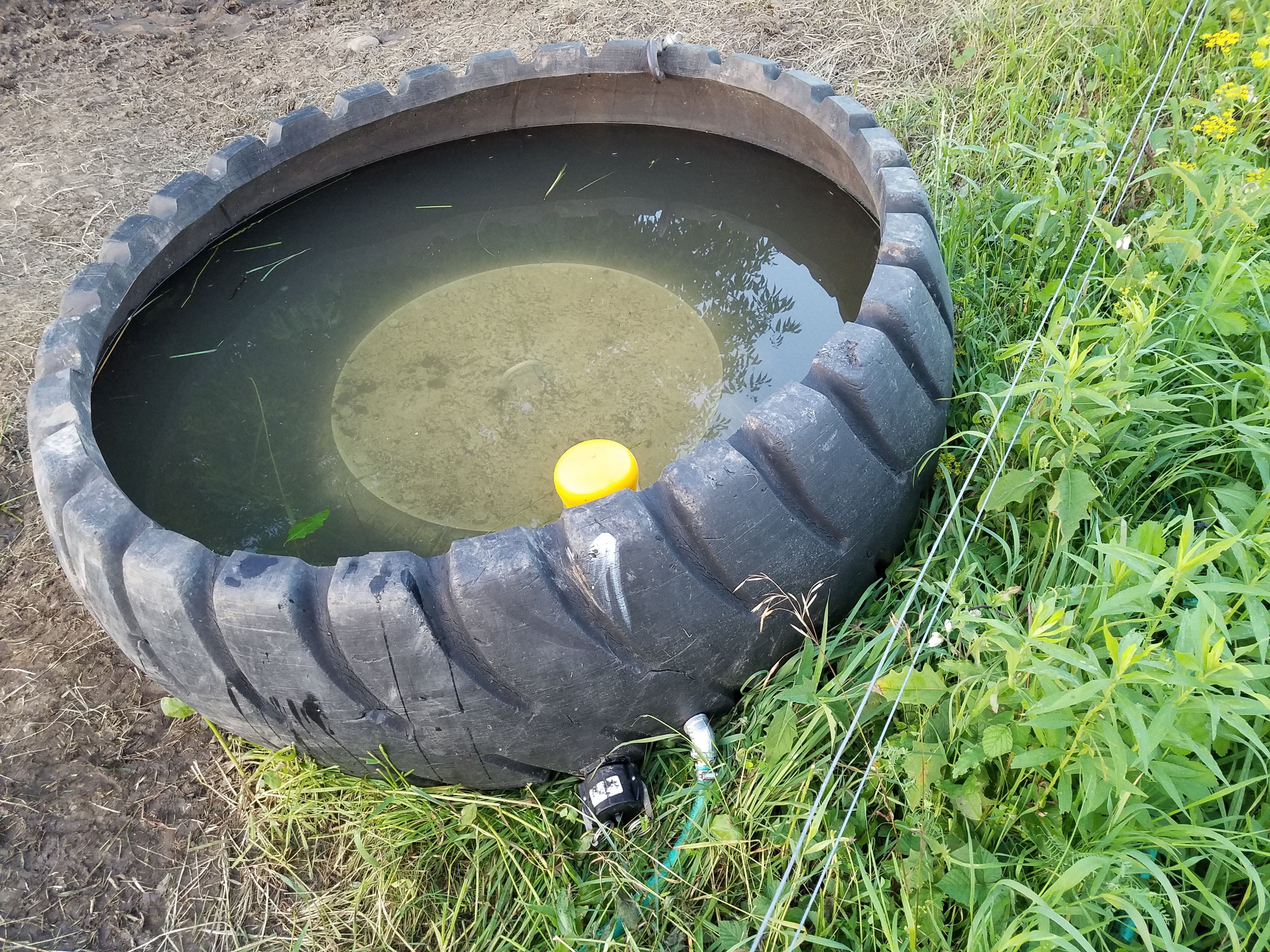 We’ve been using worn out heavy equipment tires for permanent drinking troughs for a few years now, but I finally got around to building a portable tire trough. For portables, we’ve used plastic and galvanized troughs but inevitably they crack or crush when cattle lean on them too enthusiastically. Our fixed tire tanks have been unphased by the roughest treatment from cattle, so I knew I wanted to replicate that durability in my new portable trough.