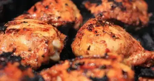 Chicken thighs, bone-in and skin-on. Delightful dark meat.