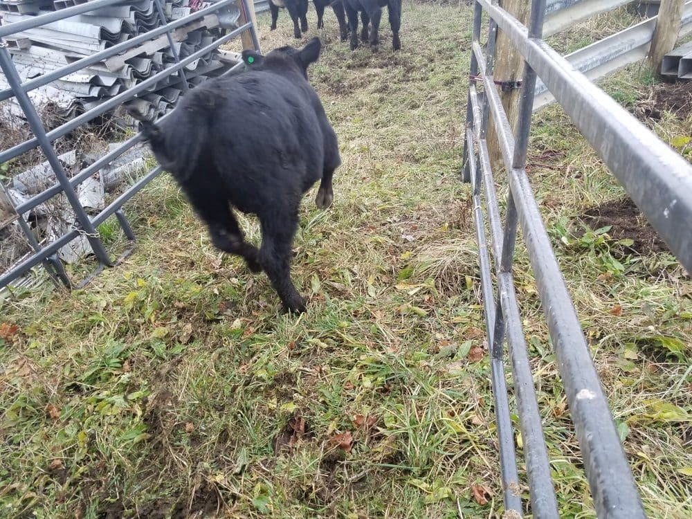 We have a great arrangement with our neighbors. They manage their herd of Angus cows and bulls, and we buy the calves from them each spring and fall as the weaned calves are ready. We raise the calves for the next year and a half until they are fully grown and ready for butchering. It helps each farm to focus on one aspect of cattle rearing. And the situation suits the calves because they don’t need to undergo any stressful travel to distant farms.