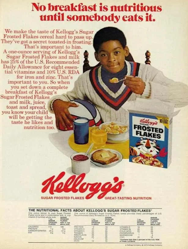 With some nostalgia I have been looking back at breakfast cereal ads from the 1970s and 1980s. These were sugar-heavy cereals, like Cap’n Crunch and Fruit Loops. Somehow, they all managed to convey the idea of health. Advertisements for cereals that were thirty, forty, or fifty percent sugar by weight would still shamelessly promote themselves as nutritious. Sure, they’d have to sidestep the whole sugar thing (call the sugar honey, call the sugar fruity, call the sugar a “secret frosting”). But they would be eager to point out that one serving contains ten percent of the iron or zinc your child needs. Never mind the tooth decay or the diabetes, your kiddo will have iron! That’s nutrition, right?